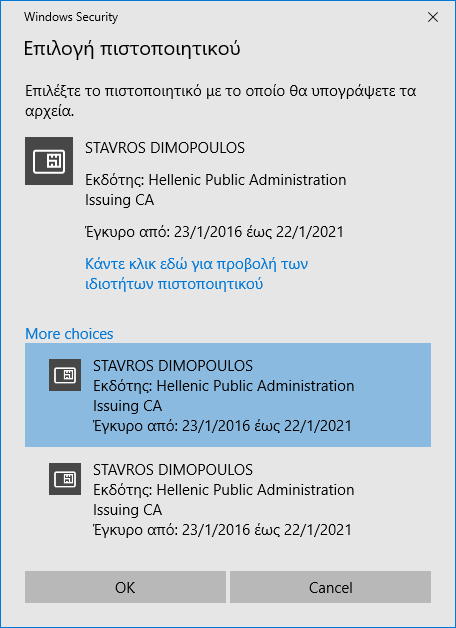Αν έχετε Windows 10 ή νεότερο, με το τελευταίο windows update των Windows (25H2) ενδέχεται να μην μπορείτε πλέον να υπογράψετε με την ψηφιακή σας υπογραφή. Δεν εμφανίζεται το πιστοποιητικό σας όταν πατήσετε "Επιλογή".