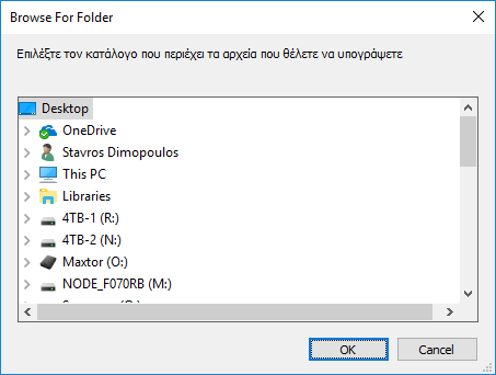 Επιλέξτε έναν κατάλογο στον υπολογιστή σας και αυτόματα θα υπογραφούν όλα τα DXF και PDF στον κατάλογο αυτό. Μπορείτε να επιλέξτε να υπογραφούν και τα αρχεία σε υποκαταλόγους.